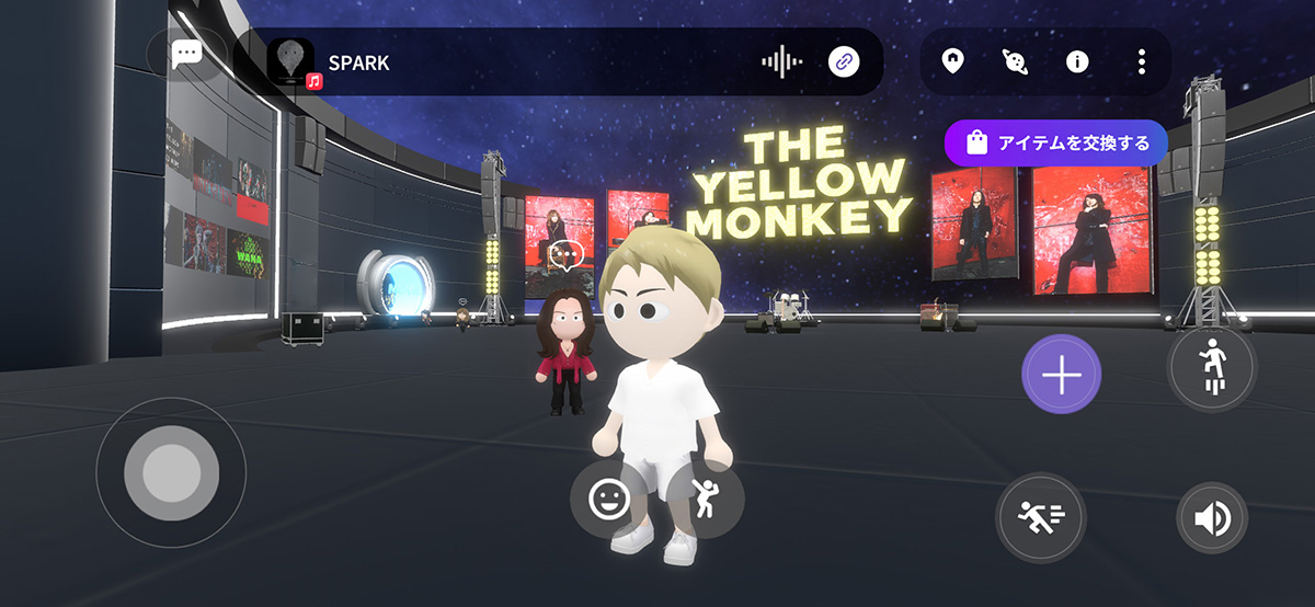 そのライブの高揚感とステージの熱量をそのまま閉じ込めたような臨場感あふれるTHE YELLOW MONKEY専用メタバースワールドが誕生しました。光と音に包まれた空間には、象徴的なステージ演出や映像が再現され、まるでライブの“中心”に立っているかのような体験が広がります。