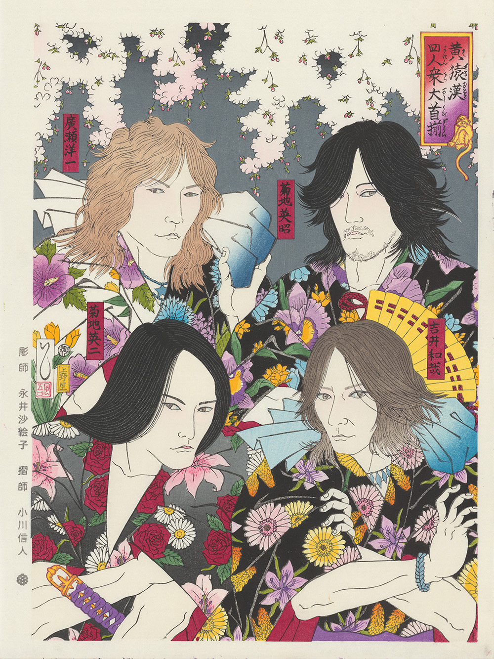 本取り組みの第一弾として、THE YELLOW MONKEY 結成35周年を記念した浮世絵作品「黄猿漢四人衆大首揃」(きざるおとこよにんしゅうおおくびぞろい)を、2026年1月28日(水)より、限定100点(うちFanpla Marketにおけるトークン販売は限定20点)の抽選販売にて受付開始いたしました。